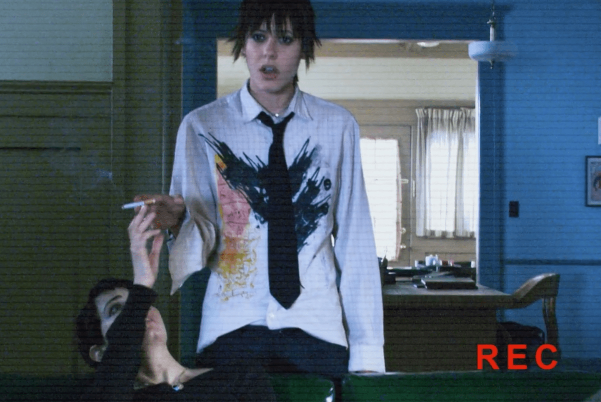 Or opt for old faithful: for Jenny, a weird lacy dress with a high or peter pan collar (here’s an expensive one from Anthropologie and a less expensive one from Dolls Kill). For Shane, low-slung flare jeans, a studded belt, and a Free City or sheer gauzy tee.