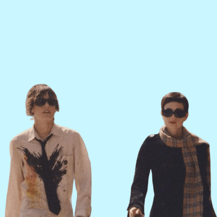The best outfit choice for a Shane/Jenny is the iconic post-Jenny’s-dyke-haircut stroll — Shane in a tie (ofc) and a white shirt inexplicably splattered with paint (you can make this yourself at home) and Jenny in a buttoned-up peacoat, black shirt and sunglasses with her little pixie cut and Burberry scarf. But you could also just pick a la carte from this resplendent collection of transcendent L Word fashion that includes Shane’s leather vest and Jenny’s bubble dress.