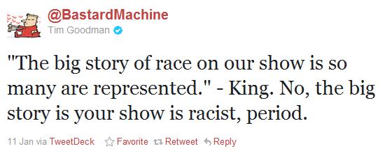 Critics seem genuinely surprised the show is popular despite its racist elements. I can think of a shit ton of things that are popular despite their racist elements: the justice system, the public school system, the cool kids at your high school, etc. I feel like racism is pretty popular in the same way this show is. If people don’t feel personally responsible, they figure it’s okay to sit around and silently reap its benefits.