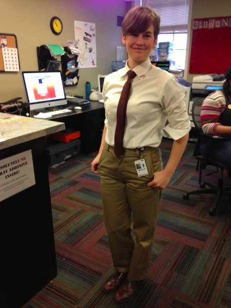 I realized while looking through these that a year ago, I hadn’t found Autostraddle yet, and I thought I had no interest whatsoever in fashion. Although I knew I was genderqueer by that point, I thought that since I am technically female, fashion = women’s fashion. I am so glad that I realized at some point that I can dress great by being dapper instead of feminine. I am now actually sort of into fashion, and it feels so bizarre to admit that.