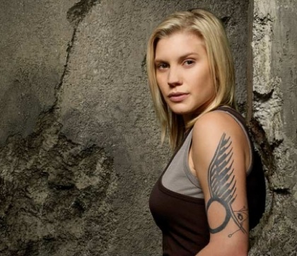 Starbuck / Kara Thrace is a character from the tv show Battlestar Galactica. She is also a badass and looks good in a uniform. Here, watch this and be edumacated.