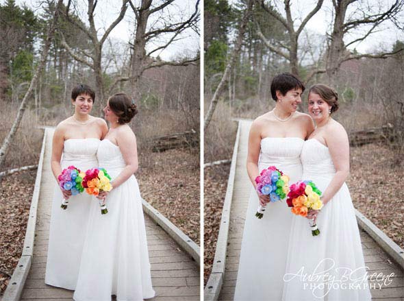 These pictures are so great! They are, indeed, adorable. :) Makes me a little jealous, actually. I very much dislike being the center of attention, and have no desire for a ceremony of any kind, but… just being able to get married, I wish I could do that. As for the ladies in the photos, congratulations!