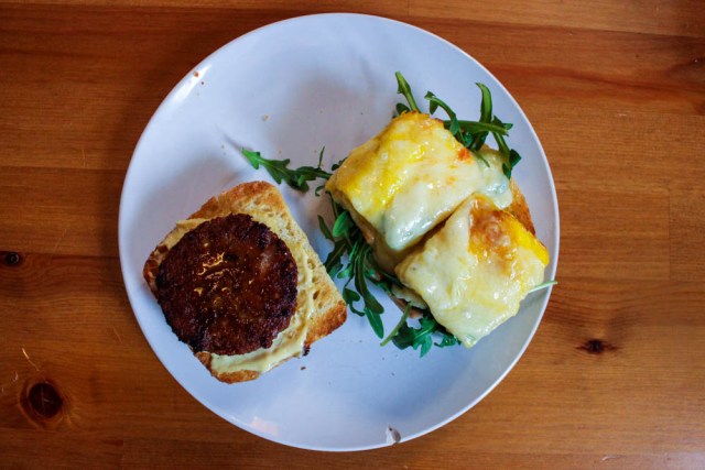 For vegetarian protein I’m partial to the Gardein breakfast patties that manage to not only taste good, but have a decent texture and also have some juice to them. I like Beyond sausage too but we only seem to get the hotdog-shaped ones here, not the patties. I suppose I could reshape them if I felt ambitious.