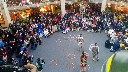The theme of this week in Western Canada has been protest on the prairies. There have been road blockades, round dances in shopping malls, and marches. As the movement grows, “protesting Conservative government bills beginning with Bill C-45 [that] threaten Treaties and [an] Indigenous vision of sovereignty” it’s simply something that can’t be ignored. A recent Tyee article called Idle No More the “biggest and most important national outpouring of grassroots aboriginal anger ever seen in Canada,” and as I tried to find my friend in a large crowd of dancers and speakers in -30 with windchill weather last week, I could believe it. I couldn’t believe that a protest this big was happening in Alberta.