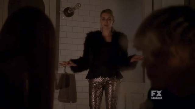 Downstairs, Queenie is emptying her old room of Misty’s shit, since Misty has been gone a whole 45 minutes and no one is bothering to look for her. Cordelia comes in and welcomes her back while wearing the cutest skirt I have ever seen.