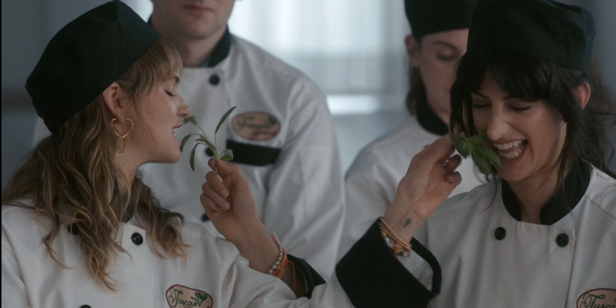 Eat Pray Love is not a movie I ever cared about, but I think it’s about how a white woman eats pasta, finds herself, and wears a hat (but not enough sunscreen). Although the book is mentioned in Aubrey Plaza’s new film, Spin Me Round, it is very much… not that. In Spin Me Round, Alison Brie plays Amber, a manager at an Italian chain restaurant who wins a trip/retreat to Italy from the company. It also stars Aubrey Plaza as Kat, assistant to the chain owner, as one of her love interests. I’ve only been to the Olive Garden once. My family was more of an Applebee’s- and Ponderosa-celebrating kinda crew, but perhaps I would have gone more and tried to work there if I knew there was a chance for me to go to Italy and have a terrifying and quick love affair with the boss’s assistant.