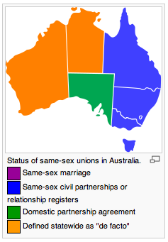 Just an fyi, The two states that recognise gays as de factos and have no other recognition are not doing so through choice. The Federal government legislated that gay couples were covered by de facto couples across the country.