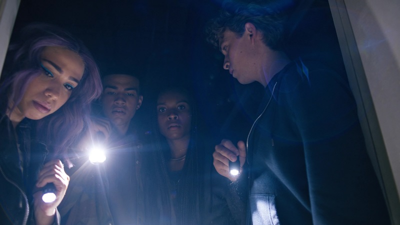 Naomi recruits her friends to break into Zumbado’s shop and retrieve the disk. It’s giving me Scooby Gang flashbacks. Annabelle and her boyfriend, Jacob, serve as lookouts, while Lourdes picks the dealership’s lock and joins Naomi, Anthony and Nathan on the search. They don’t find the disk but Naomi finds an old newspaper detailing a UFO sighting over Port Oswego on the day she was adopted. In one of the pictures? Dee, looking exactly the same as he looks in present day. Her friends discover a safe but they barely have enough time to escape before Zumbado arrives.