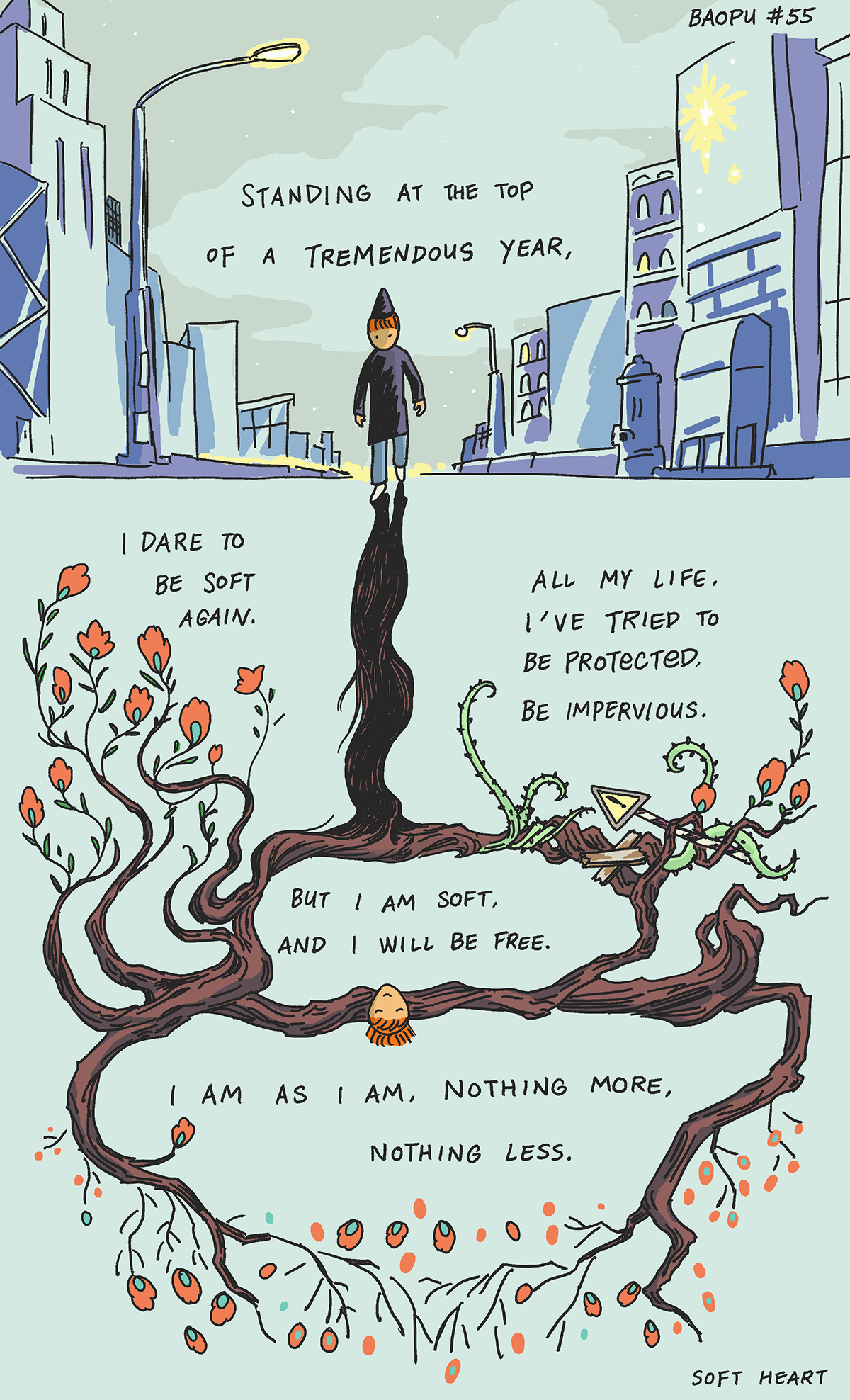Yao Xiao is a China-born illustrator based in New York City. Yao Xiao creates artwork depicting a poetic visual world where complex concepts and human emotions are examined, amplified, and given physical form. Her work has helped people all over the globe connect at unique moments, from the celebration of the 20 Year Anniversary of the SXSW Interactive Festival, to the grand release of pop singer Katy Perry's single 'Dark Horse.' She has created deeply emotional and beautiful graphics for editorial print publications, pop music record covers, concert posters and book covers. Yao Xiao's serialized comic Baopu currently runs monthly on Autostraddle. It is an original comic exploring the nuances in searching for identities, connections and friendships through the fictional life of a young, queer emigrant. Baopu stands for 'holding simplicity,' a Taoist ideal of wishing to return to a simpler state. Find her on Twitter, Facebook, Instagram, Etsy or her website.