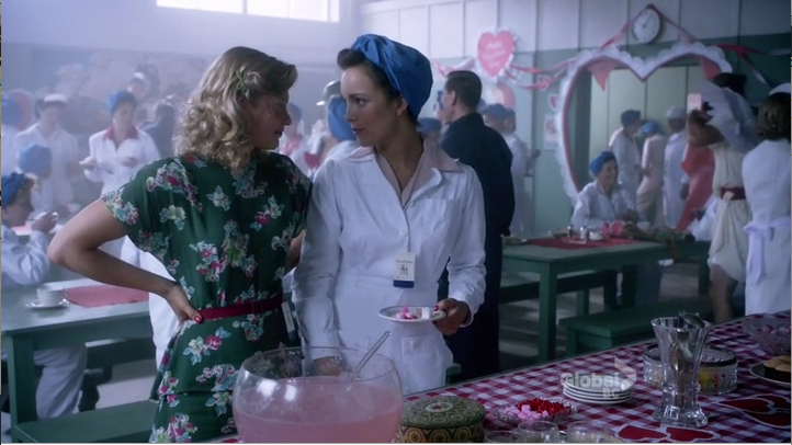Lorna is turned down in her plea for a job in the kitchens, or anywhere else there will not be continual exposure to toxic chemicals. This actually makes me wonder if all of the factory girls, aka my precious babies, are going to eventually die of horrific diseases. I’m going to pretend that was never a thought that crossed my mind. Let’s pray that Kate and Betty at least make it to the sixties so they can move to New York and get Sterling Cooper Draper Pryce to design the business cards for their gay enterprise.