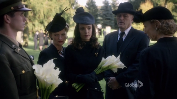 In the first scene of the show that has ever taken place in the good ol’ United States of America, Gladys & Witham Clan are in Massachusetts for James’ funeral. I’m a little disappointed that this scene didn’t involve McDonalds, a bald eagle, redneck tourists, or any of the other things I have come to expect with non-American portrayals of Americans. James’ mom is super bitchy and definitely blames Gladys for her son’s death. Shockingly, Gladys is not 100% on board with this accusation.