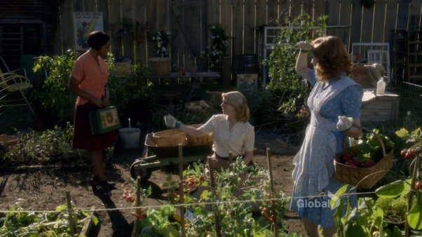 Our favorite lesbians are back, and they’re gardening because that’s not gay at all. Community gardens, an investment in fairly sourced food, and vegetarian phases are definitely not some favorite pasttimes of the lesbian community. Betty is showing Kate how to gently and yet forcefully pluck the ripe fruit of the tomato vine. This is a thing I do with my platonic friends all the time – I show them how to slowly grasp at round objects handing in front of them, and then tell them to give those objects a gentle but playful squeeze.