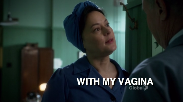 Sweet baby Jesus’ sweet baby cheeks, Bomb Girls is back! Did you make it through the hiatus? Were you able to find an outlet for your tears and your feelings and your strong investment in fictional 1940s lesbians? I had to take up a hobby in order to deal with all the pent-up emotion I wasn’t sobbing out once a week, so I’m now a skilled taxidermist! Feel free to shoot me an email the next time you need your pussy stuffed!