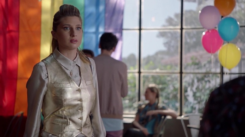 “It made my life easier when I started living openly and honestly, so maybe you start there and just see how the rest of the stuff falls into place,” Professor Shane McCutcheon Paige Hewson suggested to Nomi and, this week, Nomi took her professor’s advice and dove headfirst into Cal U’s queer community, starting with queer performance art at Titanium. When Aaron declines to go along, Nomi reminds him that no one invited him. She drops a few gender studies buzzwords and it’s clear that Nomi’s been worshipping at the altar of Professor Hewson. Nomi doesn’t deny it, she’s her gay guru, her gayru.