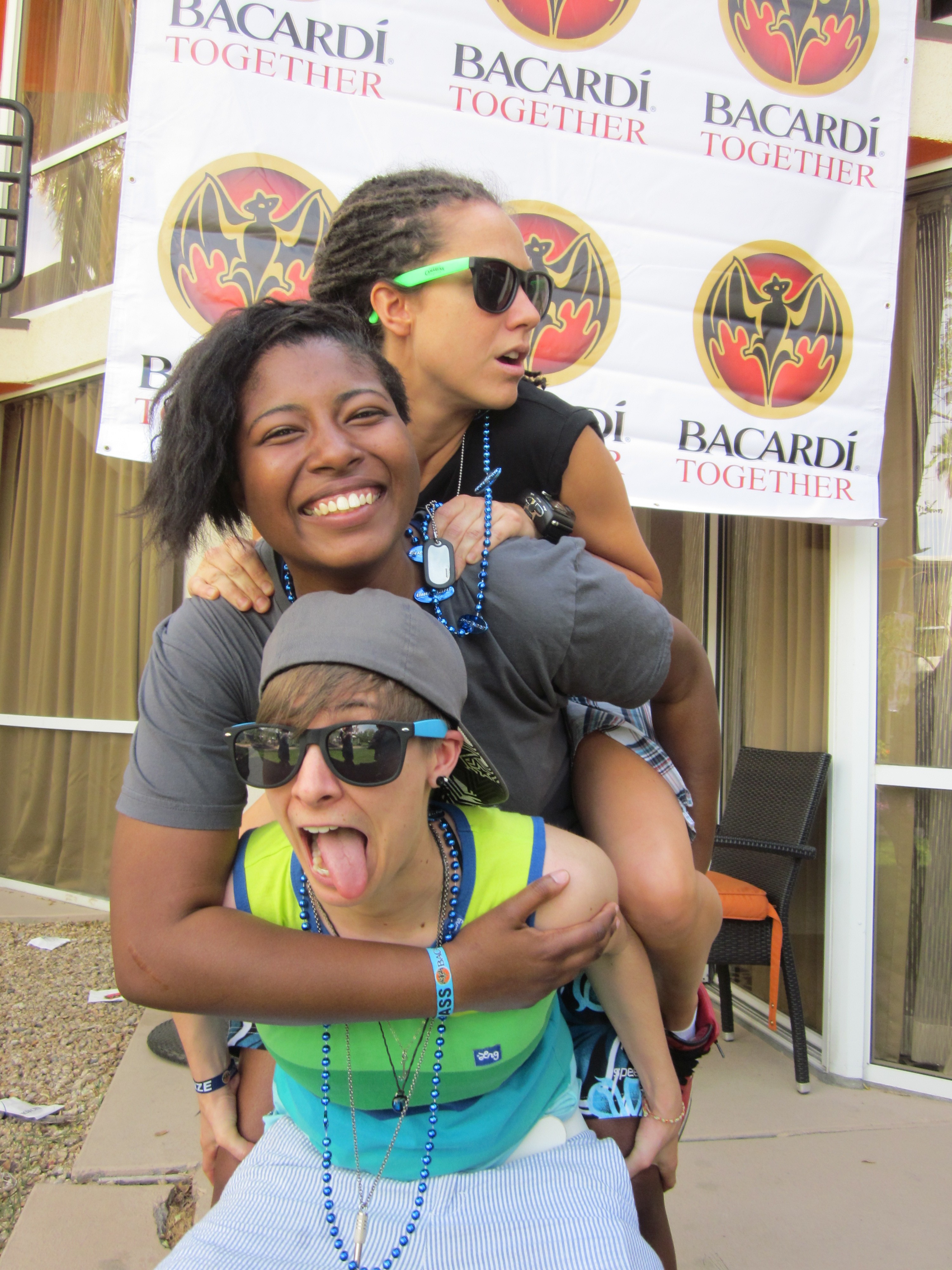 Equipped with my favorite t-shirts and most-pocket-having board shorts, I hit the road with very little sleep and a whole lot of anxiety. The night before felt like lesbian Christmas Eve and I was afraid that Dinah Shore would be a lump of coal. Mere weeks before as “I am a poor boi too, pa rum pum pum pum” echoed through my head, I’d been convinced to engage in a slightly stripped down version of Dinah Shore.