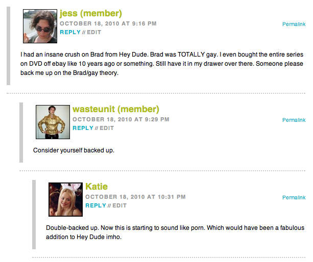 OFMG, I usually devour EVERYTHING you pretty people post and the one freaking day I get a comment award I miss it. Anyway, thanks! Day totally made. Also, Emily, I think you should get some sort of pass on reading the comments for how to meet queer ladies. It’s just a behemoth of insanity.