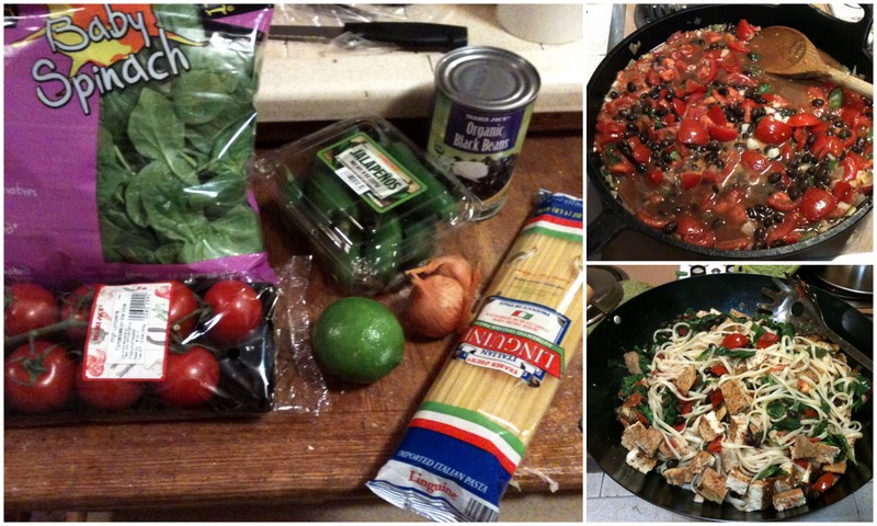 I’m not sure what I was expecting, but this just turned out to be Pasta With A Lot Of Crap I Like In It. It was light and fresh, and the combination of flavors really complimented the Chili-Lime-Rubbed Tofu. It took minimal time to throw together and impressed the hell out of the people whose kitchen I was using. I did have some issues with timing, trying to balance all of this out with the tofu, but next time I will be ready. This dish only got more delicious in leftovers form.