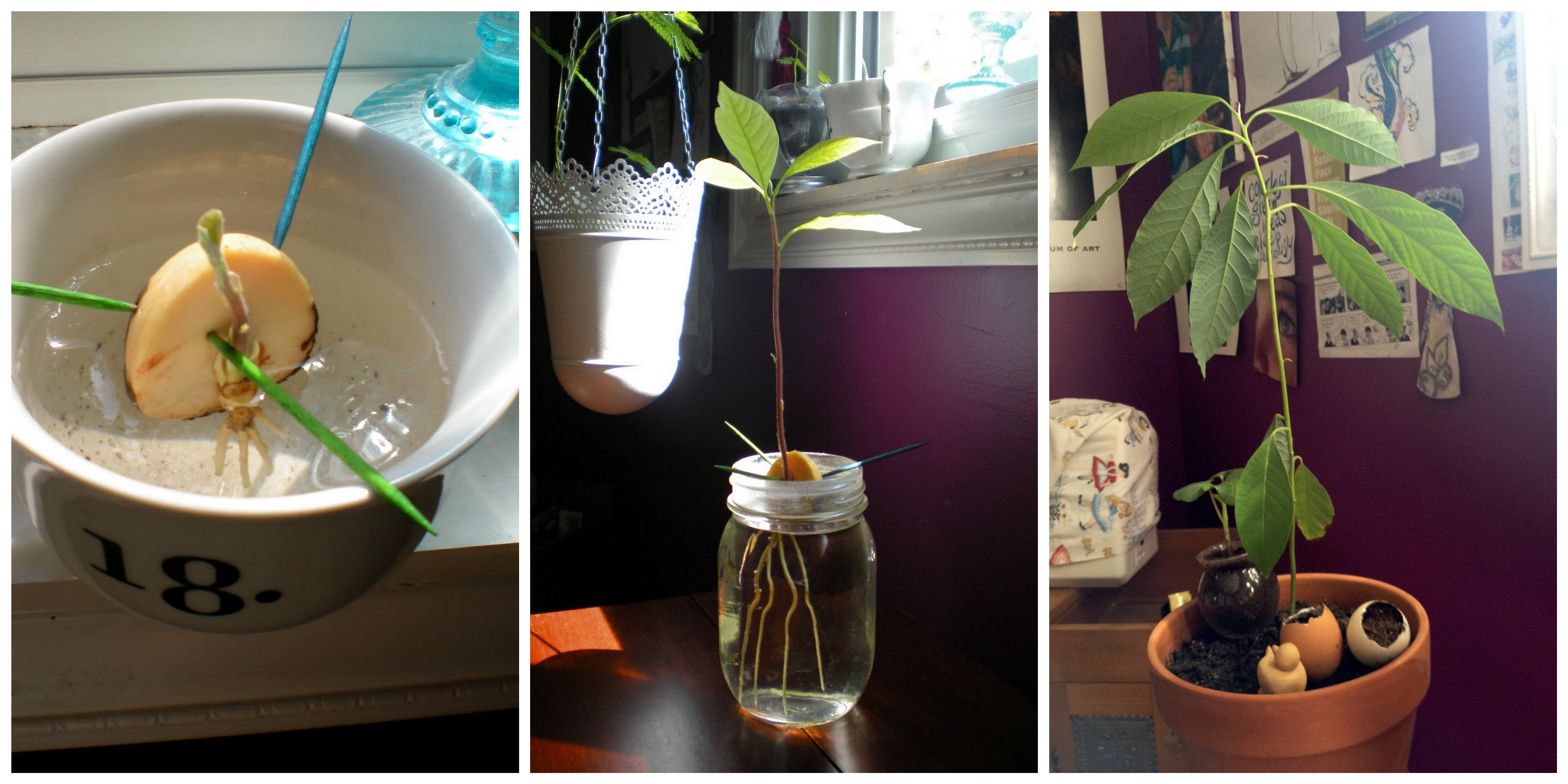 + Avocados: My avocado plant is my pride and joy. I’ve nurtured it from a tiny(ish) seed that came from an avocado that I used to make a sandwich, to the 14-inch tall plant it is today. In nine years, all my hard work will be worthwhile when my tree finally grows its first avocado and I move to guacamole heaven. All you need to start your own plant is an avocado, three toothpicks, water, and a cup. It takes almost 2 months to even sprout, but don’t get impatient: it’ll happen!