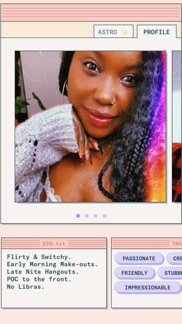 Shelli: See Drew, that’s the vibe I want a lot of folks to have, but I feel like it will ultimately be the reverse as it expands. Folks who come to the app with a staunch stand of (probably rightfully) rejecting whatever sign(s) and get no play or come off hella judgemental in the initial message exchange.