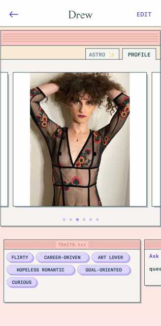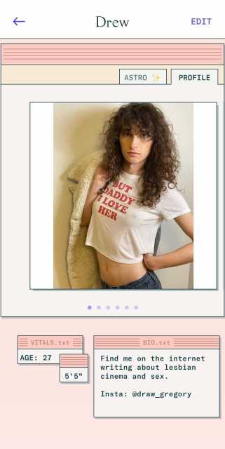 Drew: I feel like I only recently claim a level of knowledge beyond baby astrology queer, which is where I was living for awhile. But my relationship to astrology isn’t so concrete that I went into this with any specific mission. It just seemed like a fun instigator for flirting since inevitably on other apps astrology is often brought up anyway.