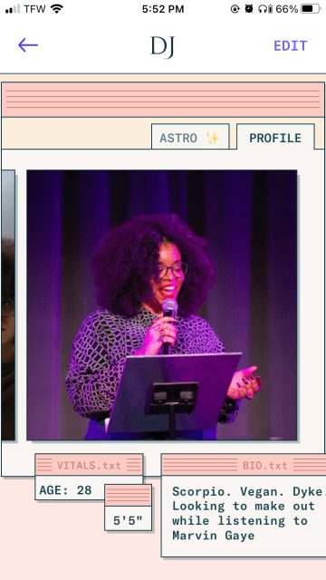 Shelli: I think queer folks would dig the fuck out of this app though. Especially those who are looking for a different dating app experience and are looking for things to be chill. Maybe someone who is already doing some flirting and kicking it with folks already and doesn’t want to be completely removed from the apps but not totally invested either.