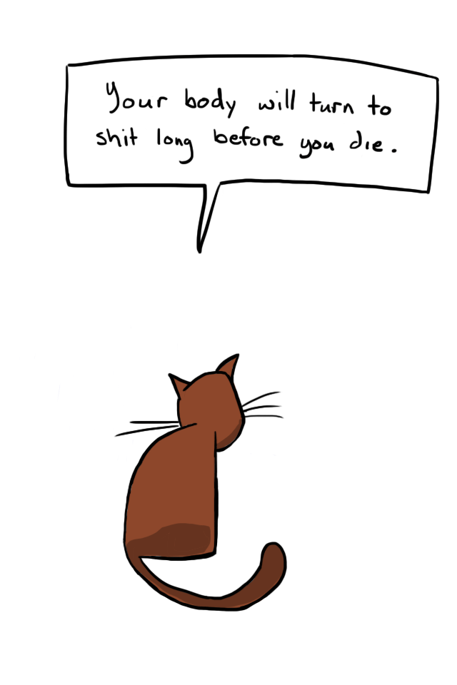 These cats speak some harsh truths! My body will turn to shit long before I die tho. I’m way to vain to be okay with this truth.