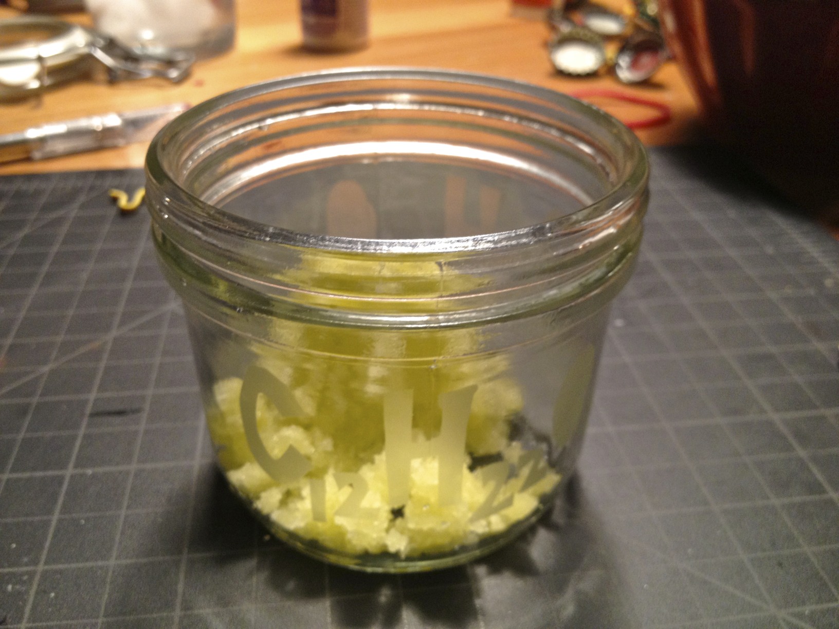 5. Wash the etching cream and sticker off the jar and–this part’s really important–be careful not to touch your eyes. It’s probably goes without saying, but since I’m the one who has touched my eyes after cutting serrano peppers twice this week, I’m going to point it out anyway.