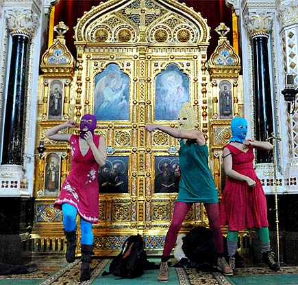 Political protest and punk are powerful partners as was recently articulated in an NYT Op-Ed “Real Punk Belongs to Fighters” pointing to political protest punk by groups such as the UK band the Sex Pistols, the Iranian band The Yellow Dogs and the Burmese band Rebel Riot. With their increasingly bold actions Pussy Riot has in no small way brought an international spotlight to ongoing human rights abuses by the Kremlin with devastating ramifications for women, the gay rights movement and civil freedoms in Russia.