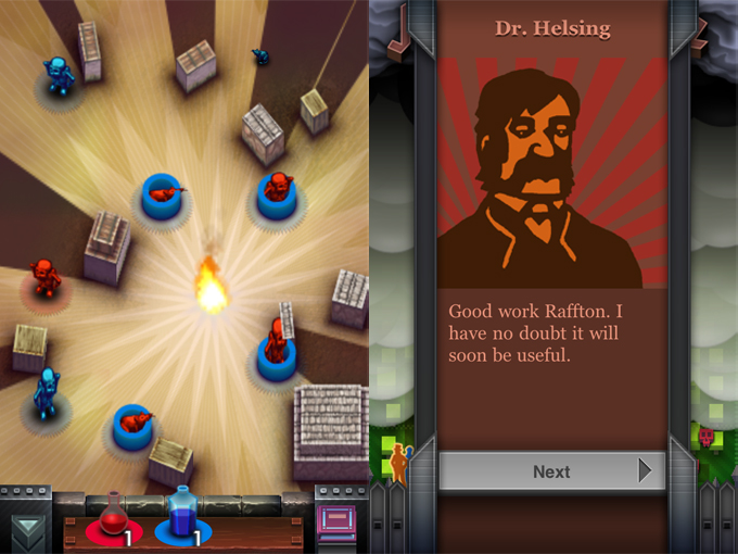 Remember Space Invaders? This is just like that except for the tongue-in-cheek B-movie dialogue (and sometimes smack-talk) that happens between you (the alien-blasting space pilot) and the evil alien invaders. What sets this game by Hexage apart are the beautifully rendered neon retro-esque visuals and the atmospheric, electronic music. You blast through blocky, pixely alien hoards that look like they came straight out of your Atari, except that the aliens have suddenly moved into a nightclub and swallowed glowsticks, pulsating and shimmering fluorescently in the outer space sky. The storyline reads like it came out of a not-so-great alien movie (complete with time-traveling action!) but the writers of Radiant‘s dialogue seem to be aware of it and play with the tropes lightheartedly. The main pull is the simple controls and sleek visuals, which create an addictive, nostalgic, alien-shooting experience.