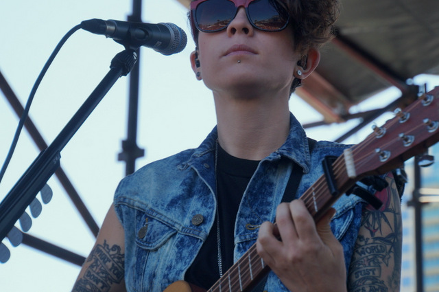 I am a hardcore Sara fan but I Tegan looks so damn good in that denim vests with all of her tattoos on display. Thanks for uploading these pics!