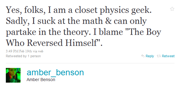 Amber Benson [@amber_benson] is another ‘Buffy’ alum (poor Tara!) who has moved onto directing/producing, and she also writes science fiction and comics. She tweets a lot about her book signings, and other things like charity work and appearances.