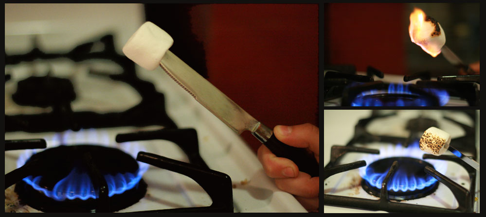 Once when I was a little baby lesbian, I thought I’d be especially clever and roast marshmallows in the middle of winter over a gas stove. Genius! I grabbed a fork and a bag of marshmallows and began to roast away. How had this not ocurred to me sooner? No more would I be forced to wait for campfire season to enjoy s’mores. I grabbed my first perfectly toasted marshmallow, pulled it off the fork and popped it into my mouth. Success. I eyed the gooey marshmallow remains on the fork and STUCK THE SEARING HOT FORK INTO MY MOUTH TO LICK OFF THE MARSHMALLOW-Y RESIDUE, consequently burning fork-marks into my lips and tongue…My parents didn’t even offer me their sympathy. They just stood in the kitchen laughing at me, wondering how their daughter could be such an idiot…
