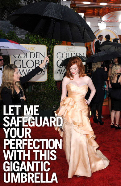 I think Jodie Foster is aging really well. I think I saw Jennifer Anniston’s vaj in that dress… and I liked it. And yes, she has still got it. I did not like Olivia Wilde’s dress but I liked her face/breasts/hair extensions. Tina Fey looked so adorable I could spread her on a cracker and eat her for brunch (not in a dirty way… that’s why I said brunch because Britishy sounding things cancel out dirty innuendos). Jillian Michaels looked good. I liked that she was holding her own umbrella. p.s. Where can I sign up/ go to school to become a celebrity umbrella holder? Cher looked like an Adams family member/dominatrix/fancy tennis shoe. Jane Lynch’s dress was beautiful, as was she, but it didn’t look right to me. I guess I wanted her in a snappy pant suit or something. The Lynch in a dress is just like a wolf in a sheep’s dress or something. Also, I want to know what kind of magical potion Halle Berry drink’s to keep her looking so young/hot/similar to melted chocolate from the Gods. That is all.