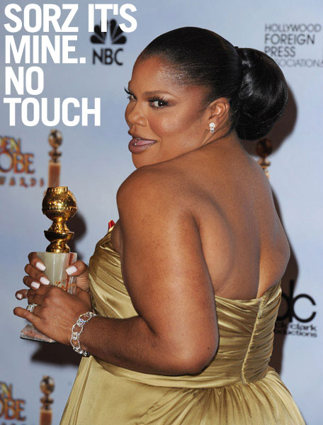 GOLDEN GLOBES: Rounding out our assertion that 2009 was The Year of the Weirdo, Glee won a Golden Globe for Best Comedy/Musical Series and dedicated it to “everybody and anybody who got a wedgie in high school,” and then said something sweet about arts education. Even though Jane Lynch didn’t win a Golden Globe, she can still do no wrong and therefore that must’ve been just how Zeus wanted it to be. Look we have a gallery for you with captions!