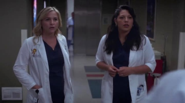 In the middle of all this fellowship jazz, there’s this flirty idol-worship/Mrs. Robinson vibe passing between Arizona and Dr. Dottie Hinson. I swear Callie’s been ready to take off her earrings and pull back her hair the entire time they’ve all been walking down the hallway. They walk down hallways a lot in this episode, btw.