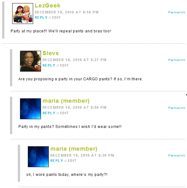 So wherever you are, whoever you’re with, whichever season you happen to be in, raise a glass to your queermo Internets buddies and read you some comment awards!