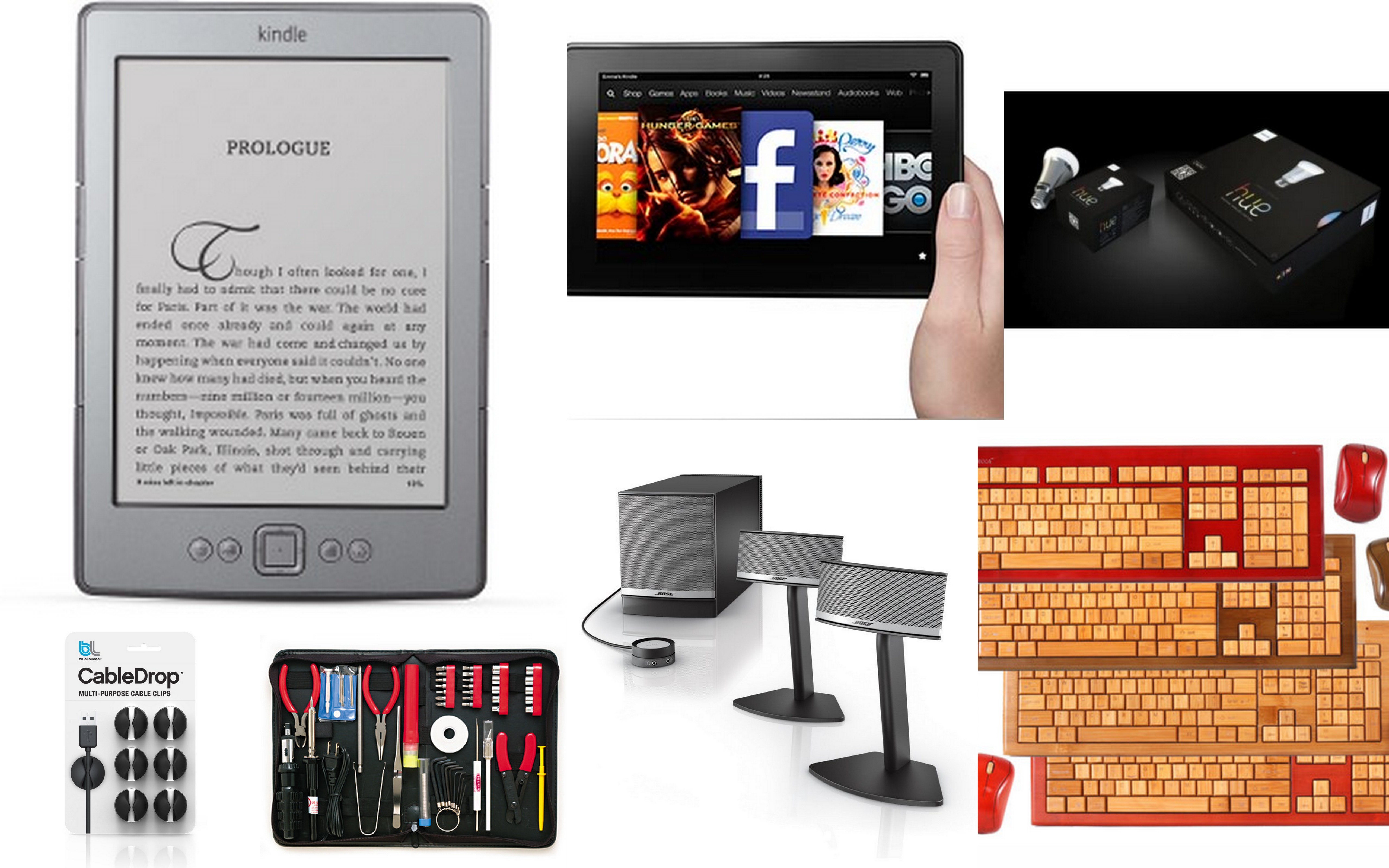 For those who are building their own computers this winter, try this 55 piece computer toolkit by Belkin ($36). For those of us who aren’t there quite yet, here’s a Samsung Chrome book ($249). Can you believe it? That’s a whole computer. A whole computer for $250! If you have a high concentration of readers on your list, you’ll probably want to consider the kindle family, with a Kindle starting at $69 or a Kindle Fire starting at $159.