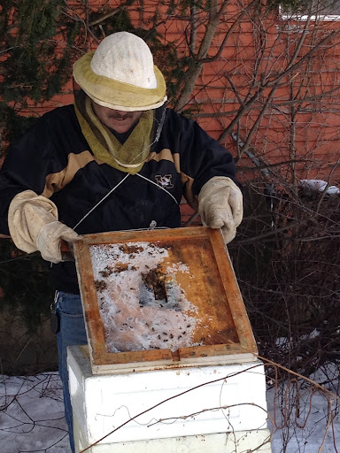 We went to two of his hives, one where the bees had died from not having enough to make it through the winter (although, bafflingly, an entire lower drawer of honeycomb had been entirely ignored by the bees who ate from bottom to top and died in droves near the top) and another mean-ass colony who were still alive and kicking in 15 degree weather. After an afternoon spent poking around the hives, I went home with a plan for my retirement, a jar full of Jack’s Gold, and a head full of bee knowledge that I can’t wait to tell you about.