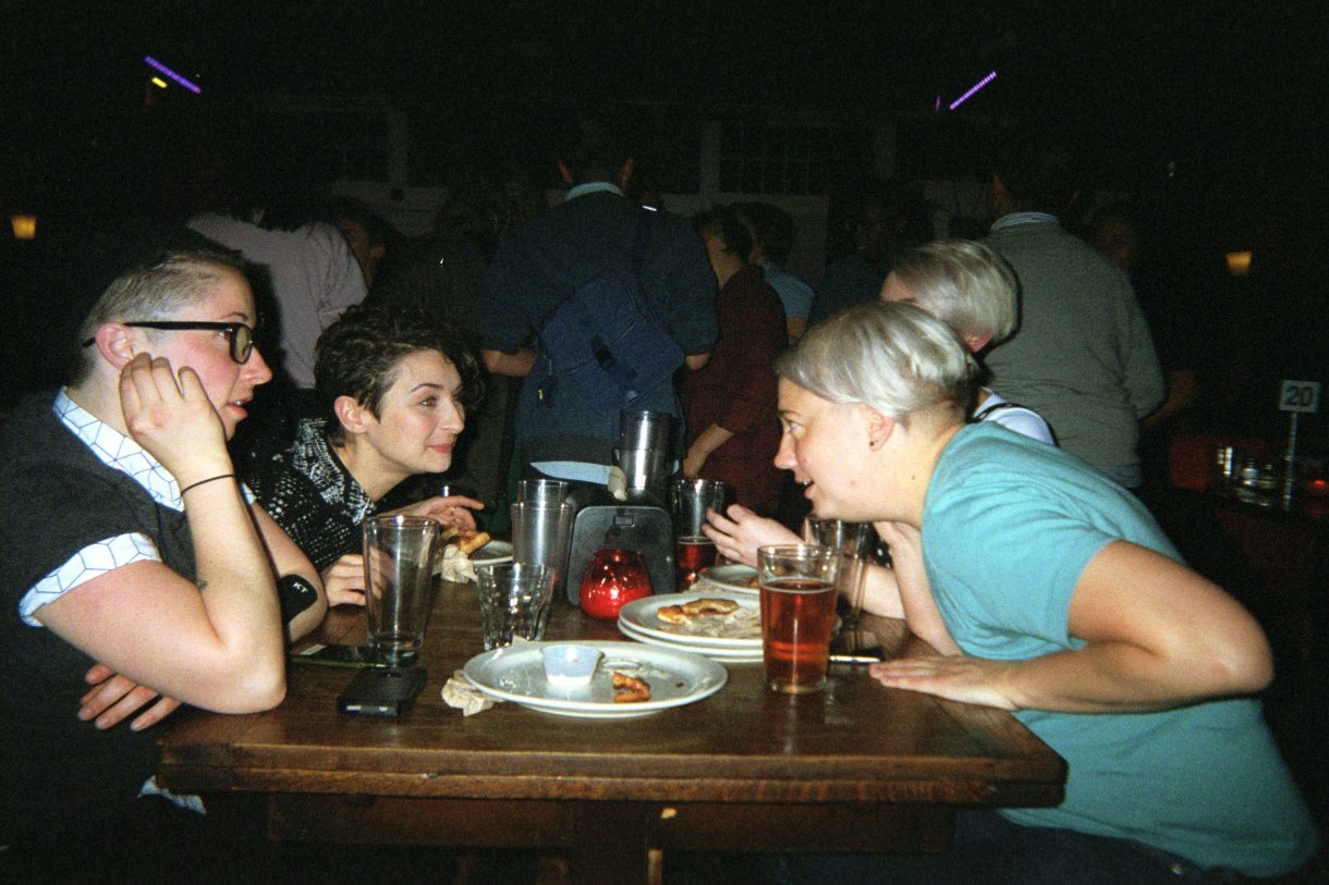 There was a really adorable group picture that printed as a blurry grey blob even blobbier than that doorway photo, but I’m thankful to have it anyway. It’s good to remember that our connections to each other criss cross and converge, and that every once in a while we might stumble into a space that cocoons us with light, obliterates worries, and fills us with honey (or maple syrup, as the case may be). After brunch I went outside and admired a bridge and the very tall trees. Murph and I talked about dismantling capitalism from inside our work at nonprofits which is probably impossible but that doesn’t mean we won’t keep trying. I had coffee with Ev’yan, and despite not seeing each other since A-Camp 6.0 we fell into a conversation about sex, love, racism, work, community and the weather (by this point the sun had made it’s way back behind some clouds). Over tea, Nate tried to convince me that it is ok for me to be a person with a gender, or something. There’s no photo because tea shops are very dark and gender is a lie which cannot be captured on analog film.