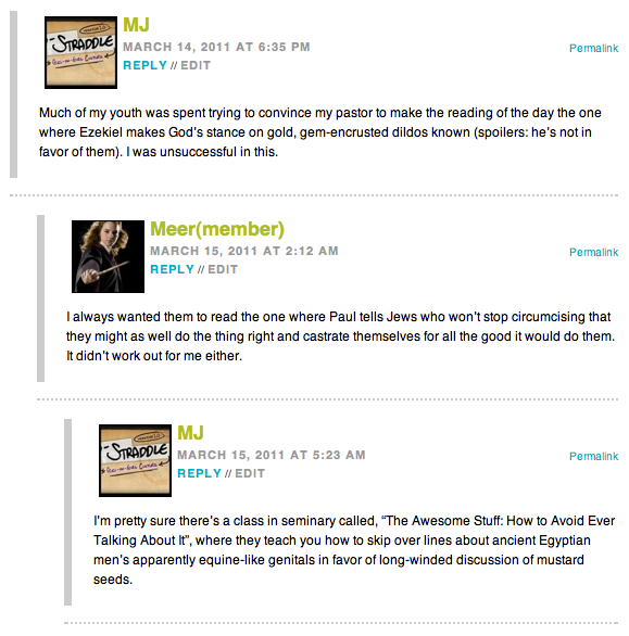 Yeah, it’s Ezekiel 16:17. I posted it on my facebook saying “Awards for best bible verses, READY SET GO” and have since discovered that a good tagline for Ezekiel would be “The Book of Ezekiel: Basically, You’re all Whores”.