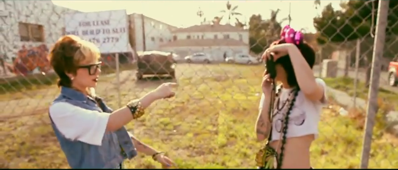 The video features a quick clip of two girls walking and holding hands while wearing beanies. So that’s pretty gay. On the other hand they both have designer purses and this song is about not being into designers. I’m not sure what to make of this bit.