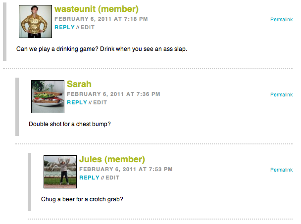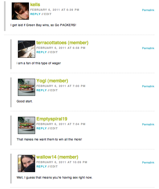 Sweet, I get laid AND I get a comment award?!?! BEST SUPER BOWL EVER!!