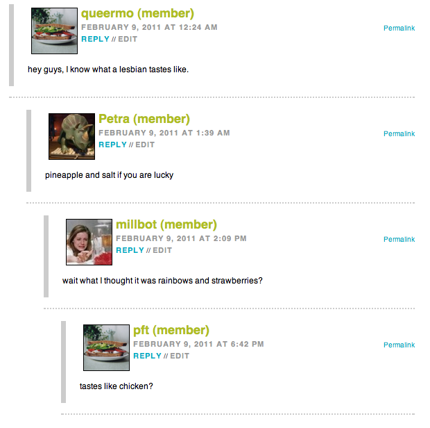 The Chicken Award to queermo, Petra, millbot, pft: