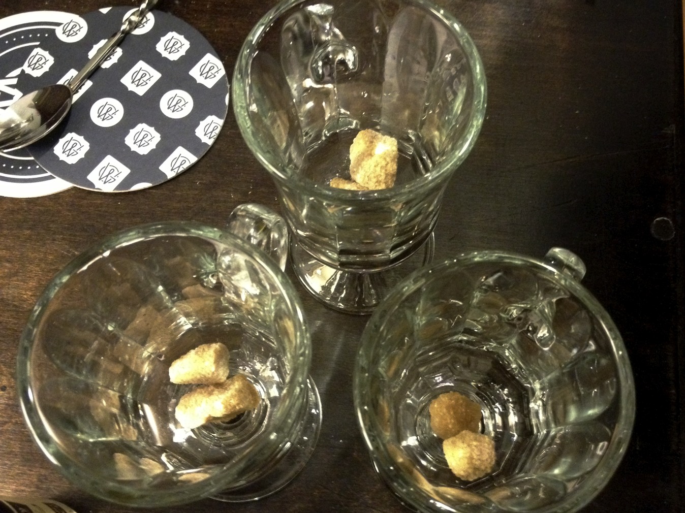 Start with the whipped cream. Combine the sugar, vanilla, and cream in your metal mixing bowl. If you want a nice, quick whipped cream, use a hand mixer like my mother suggests. Or you could be like me and not own a hand mixer, so you take turns whisking the shit out of the cream with your girlfriend. Beat it until peaks form. According to my mother, the trick is knowing when to stop. Whisk too long and you’ll make butter, and butter does not go well with Irish Coffee. I even whisked a little too short because I don’t want fluffy clouds of whipped cream, but rather a thick, almost-foam for the top of my cocktail. Put the whole mixing bowl in the fridge and move on.