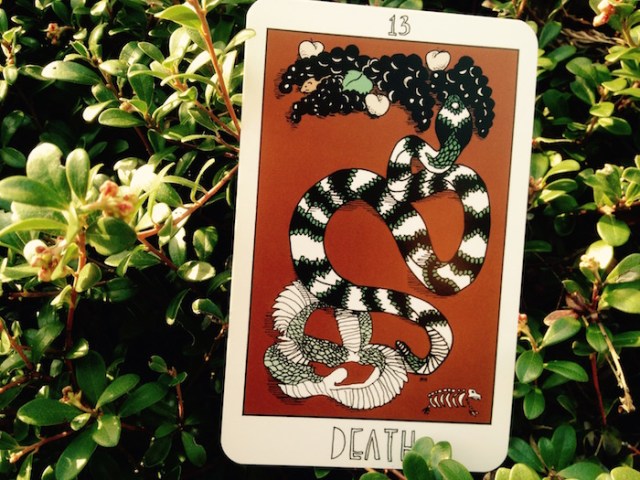 The most obvious card on this list, I think, Death tells us that it’s time for change. It’s a point in our lives where we are asked to accept that we are different people, that stuff has changed us, that life moves forwards, and that it’s time for a part of ourselves to die. We are asked to let go without mourning or regret, but with an understanding that life moves in cycles, one of which is ending. In this sense, it can be a little like Judgement, above, but here the process is less active, and more like allowing life’s natural cycle of death and rebirth to take place. To me, this is incredibly graceful once you give in to it.