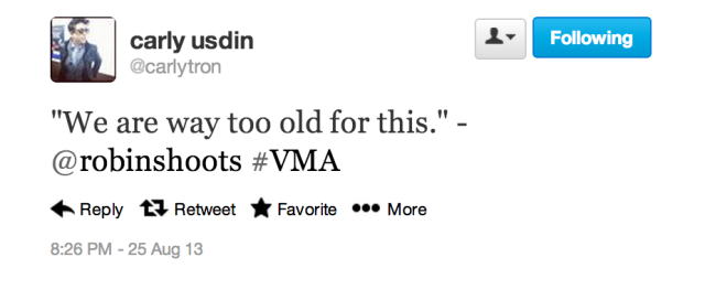 I feel weird because the VMAs don’t start for another two and a half hours here. :(