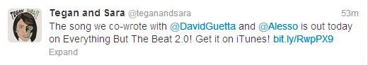 Tegan and Sara collaborate with David Guetta on “Every Chance We Run”. He dropped Nothing But The Beat 2.0 today, an expansions of his 2011 with release with nine new tracks. If that still wasn’t enough for you, Sara’s lending her vocals to James Iha of Smashing Pumpkins fame. You’ll find her on Look To The Sky‘s “To Who Knows Where” and “Dream Tonight.” His album drops next Tuesday, giving you plenty of time to pre-order.