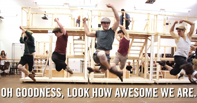 +Also, Andrew Keenan-Bolger, who I adore and who is playing Crutchie, posted a video from the sitzprobe that features a lot of singing as well as a video of a behind-the-scenes tour you’d probably like.