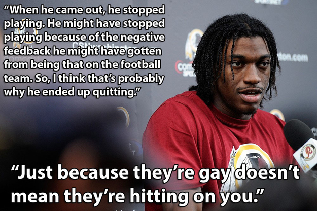 I don’t even really know anything about sports and certainly not US sports so some bits of this were incomprehensible to me but I really just want to print out that picture of Robert Griffin III and give it to all the homophobes who are terrified that gay people will hit on them. I didn’t know who he was until this but I think I love him a little bit.