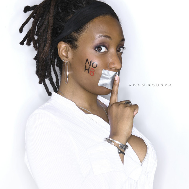 A. Bouska: Initially, Jeff and I were taking part in the “No on 8” rallies in West Hollywood [leading up to the election], but after the passage of Prop 8 I wanted to something more photography-related since every photographer wants to send a message through their images. So, we went back to our apartment at 2 or 3 am on election night, November 4, 2008, and did Jeff’s photo. We did the duct tape over the mouth symbolizing not being heard… The NOH8 on the cheek came from us seeing “Victim of H8” on Facebook profiles and we wanted to replace that with people’s faces.